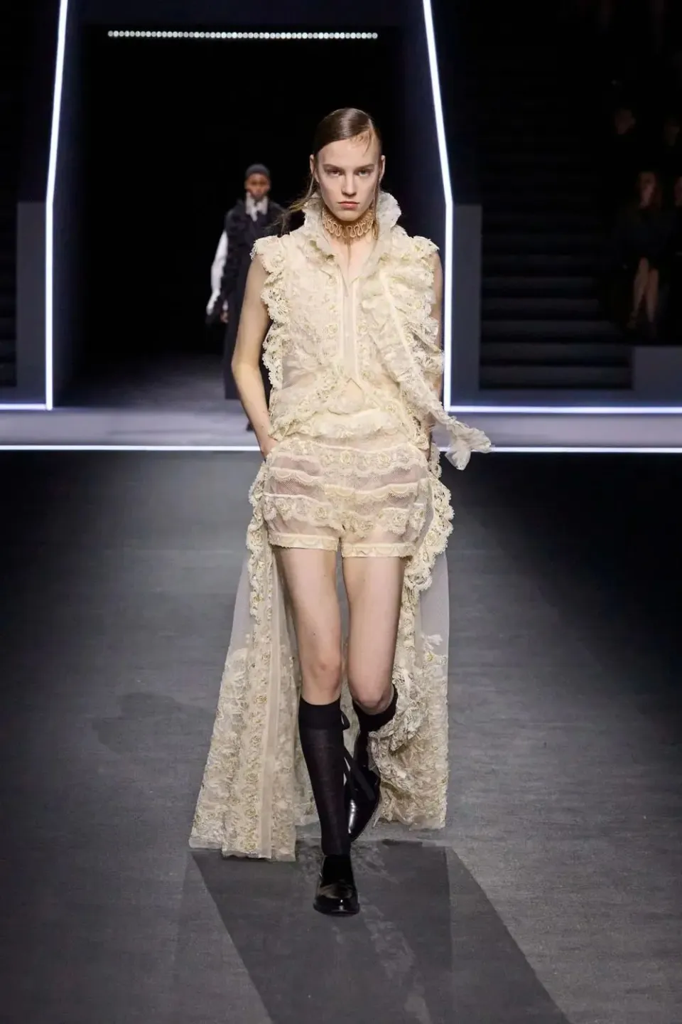 在2025秋冬系列中,迪奥推出的可拆卸蕾丝领口更是一大创新。这一设计看似简单,却蕴含着深刻的意义。它用柔美解构了传统的性别叙事,打破了人们对于蕾丝只能用于女性化、柔美风格的固有认知。这一设计在TikTok上掀起了#GendelessLace风暴,众多时尚爱好者纷纷参与讨论和模仿,进一步证明了迪奥在引领时尚潮流和推动性别平等理念方面的先锋作用。