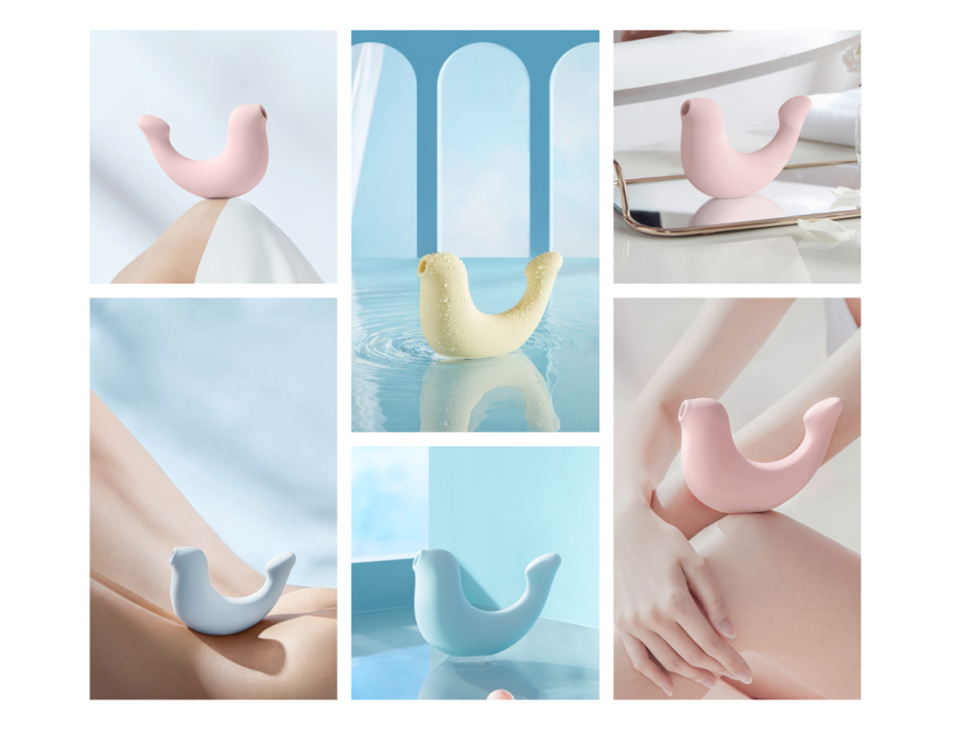 以萌趣动物搭配马卡龙色系,让情趣用品变成桌上的艺术品。不仅弱化了性器官特征。反而巧妙地用 “可爱” 消解了人们对于情趣用品的 “尴尬”。甚至可以放在女性梳妆台上,也不会显得格格不入。